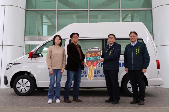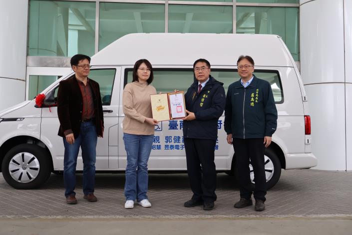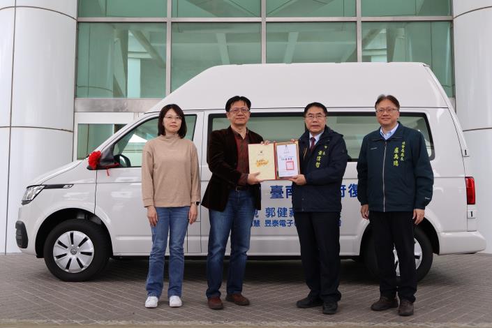 黃偉哲市長感謝郭昭輝、郭昭慧及昱泰電子股份有限公司無私回饋社會大眾的善舉,協力市府推動長照2.0服務,捐贈1輛復康巴士協助市府照顧身障朋友。黃市長表示,臺南市長照服務涵蓋率連續三年蟬聯六都第一,更於此次亞太暨台灣永續行動獎以「友善長照、永續台南」獲金級殊榮。且臺南市身心障礙人口數截至113年11月底已達10萬945人,其中肢體障礙人數共2萬9,682人,占身心障人數30%,有許多身障朋友需要交通接送協助,提升身障者生活品質也是市府重要施政目標之一,藉由民間的資源投入可以讓社褔的能量更加倍,市府將捐贈車輛使用於汰換年限已逾10年以上之老舊復康巴士,以保障使用民眾之行車安全。