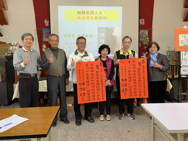 社會局局長郭乃文說明,為積極配合衛生福利部推動「紫絲帶社區初級預防認證獎勵計畫」,社會局持續鼓勵南市數個社區申請中央認證,並於113年7月邀集專家學者至社區發展協會實地審查,經自評小組認定環湖、明德社區發展協會詳盡分析轄內地理環境、人口結構、社區家庭組成且皆依據統計分析擬定活動規劃,確實符合自評初級指標,故輔導前揭2社區主動申請中央紫絲帶社區初級預防認證獎勵計畫,並順利經衛福部審認通過,獲第一階段1朵紫絲帶認證。