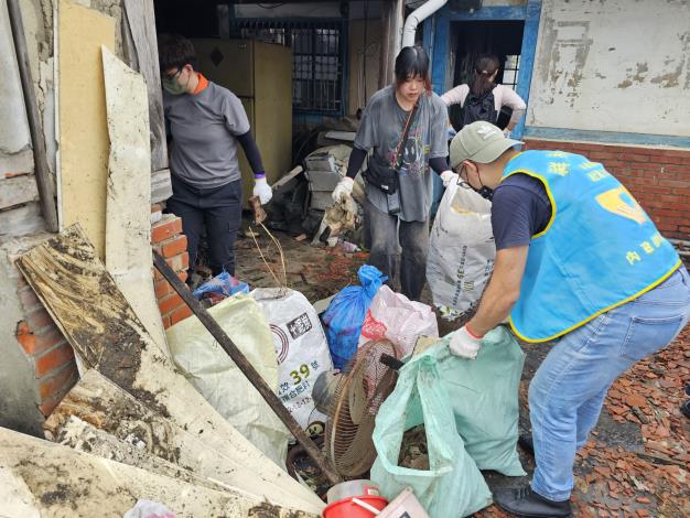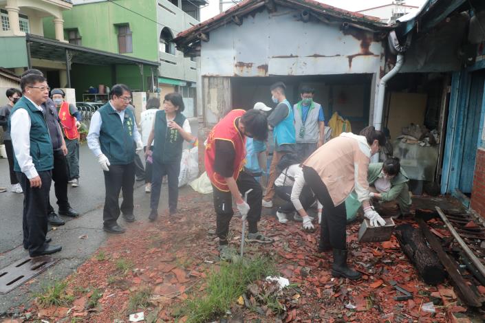 「丹娜絲」颱風重創溪北地區,台南市政府社會局啟動「災後志工媒合機制」,今(19)日媒合22位志工前往後壁區上茄苳里,協助清理受損民宅,加速災後復原。市長黃偉哲與社會局長郭乃文亦親赴現場,慰問居民並感謝志工投入。