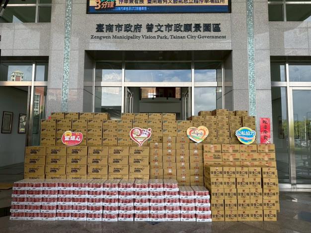 黃偉哲市長感謝全聯慶祥慈善事業基金會,運用母企業全聯褔利中心民生用品通路優勢,長期為社會公益付出,基金會已於106年、107年、112年及113年間共捐贈社會局逾464萬元之物資予本市實物愛心銀行,今年因應丹娜絲颱風更捐贈逾6,000碗泡麵、1,500包餅乾及250組八寶粥等即食性民生物資,並在最短時間內配送至本市實物愛心銀行麻豆倉儲,用以照顧颱風受災戶及實物愛心銀行服務家戶,體現共體時艱的珍貴情誼。