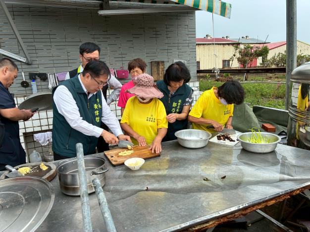 社會局局長郭乃文表示,因颱風災情,社區據點雖面臨停電,活動空間有漏水、遮棚破損等困難挑戰,但志工們仍在細雨中努力編織社區情感,備餐時考量無新鮮蔬菜食材,轉換使用乾香菇等材料入菜,保持餐食美味豐富,溫暖長輩的胃和心。社會局將持續支持社區照顧關懷據點穩定運作,落實在地老化照顧,讓長輩在災後「回到熟悉地方、和熟悉的朋友一起」,穩定安心在社區內接受關懷照顧服務。
