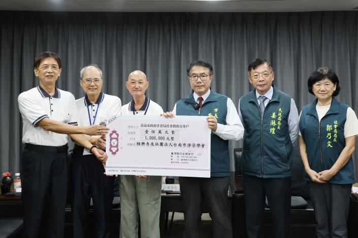 受丹娜絲颱風狂風暴雨侵襲,台南多地受損,風災過後市府立即動員社會各界投入災區搶修與復原,盼望早日讓市民恢復正常生活。極樂寺及台南市淨宗學會響應賑災行動,特捐贈新台幣100萬元予台南市政府,黃偉哲巿長代表市府受贈並頒發感謝狀,感謝極樂寺及台南市淨宗學會的愛心捐助。