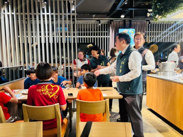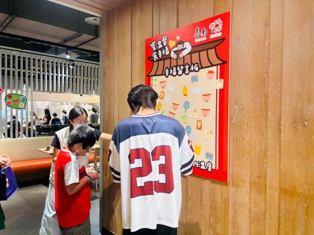 臺南市政府社會局攜手與饗賓集團於今(18)日共同辦理「饗溫馨 食幸福」公益餐會,共有100名弱勢家庭成員齊聚饗食天堂西門店共享豐盛美饌,黃偉哲巿長在社會局郭乃文局長陪同下出席,現場特別準備一面「幸福留言牆」,讓參與的弱勢家庭在象徵家的許願紙上,寫下心中對家的味道與溫度並表達對活動的感謝,用這溫暖且有力量的文字串起一段故事,堆疊出溫馨且充滿愛的「幸福牆」,讓參與的家庭感受到社會的關懷與暖流。