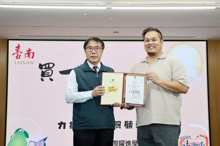 為響應南市府照顧弱勢為優先之理念,有「青果西施」美名的台南市百業國際矅進學會創會理事長顏嘉縈,每逢中秋佳節皆發起「文旦禮盒買一捐一」公益活動,至今已連續辦理5年,今(114)年更攜手馬可先生食品企業股份有限公司,共同捐贈1,000盒禮盒(內含文旦及餅乾)給台南市弱勢家戶。今(19)日於永華市政中心舉行捐贈儀式,由市長黃偉哲代表受贈並回贈感謝狀。