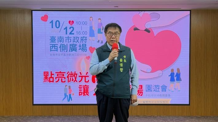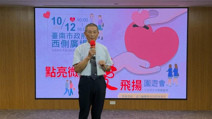 由臺南市政府與佛教慈濟慈善事業基金會與聯合辦理「大愛共善、救拔苦難」-「點亮微光,讓愛飛揚」園遊會,活動將於10月12日(日)上午10時至下午4時在永華市政中心西側廣場盛大登場。今(8)日特別於臺南市政府舉行活動宣傳記者會,由黃偉哲市長親自出席,攜手慈濟基金會代表共同向市民發出誠摯邀請,期盼大家踴躍參與,共襄盛舉。