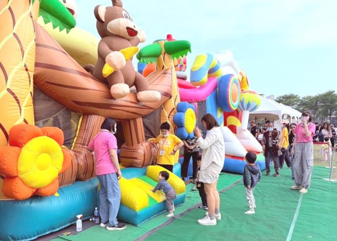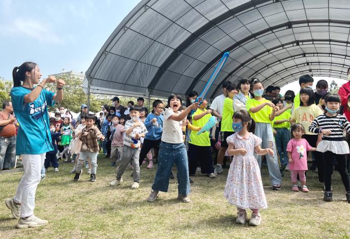 今日活動特別邀請居家托育服務中心、親子悠遊館、兒福館、公托中心及公共托育家園、育兒指導、兒童早期發展服務管理中心、到宅坐月子服務等,以多元性的宣導及闖關遊戲,融入全中運元素及倡導落實兒童權利公約(CRC),闖關卡集點完成後可至服務台領禮物。